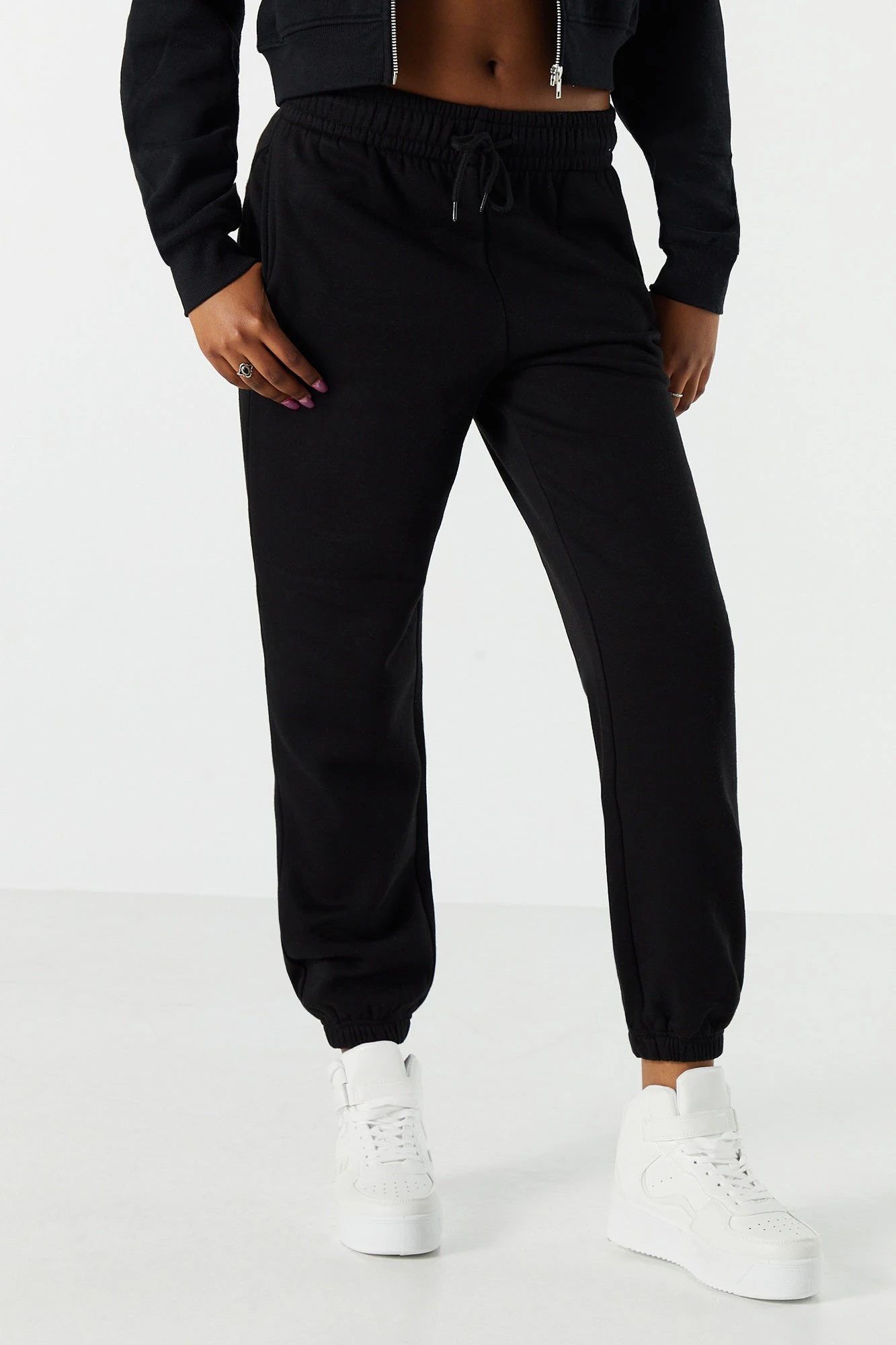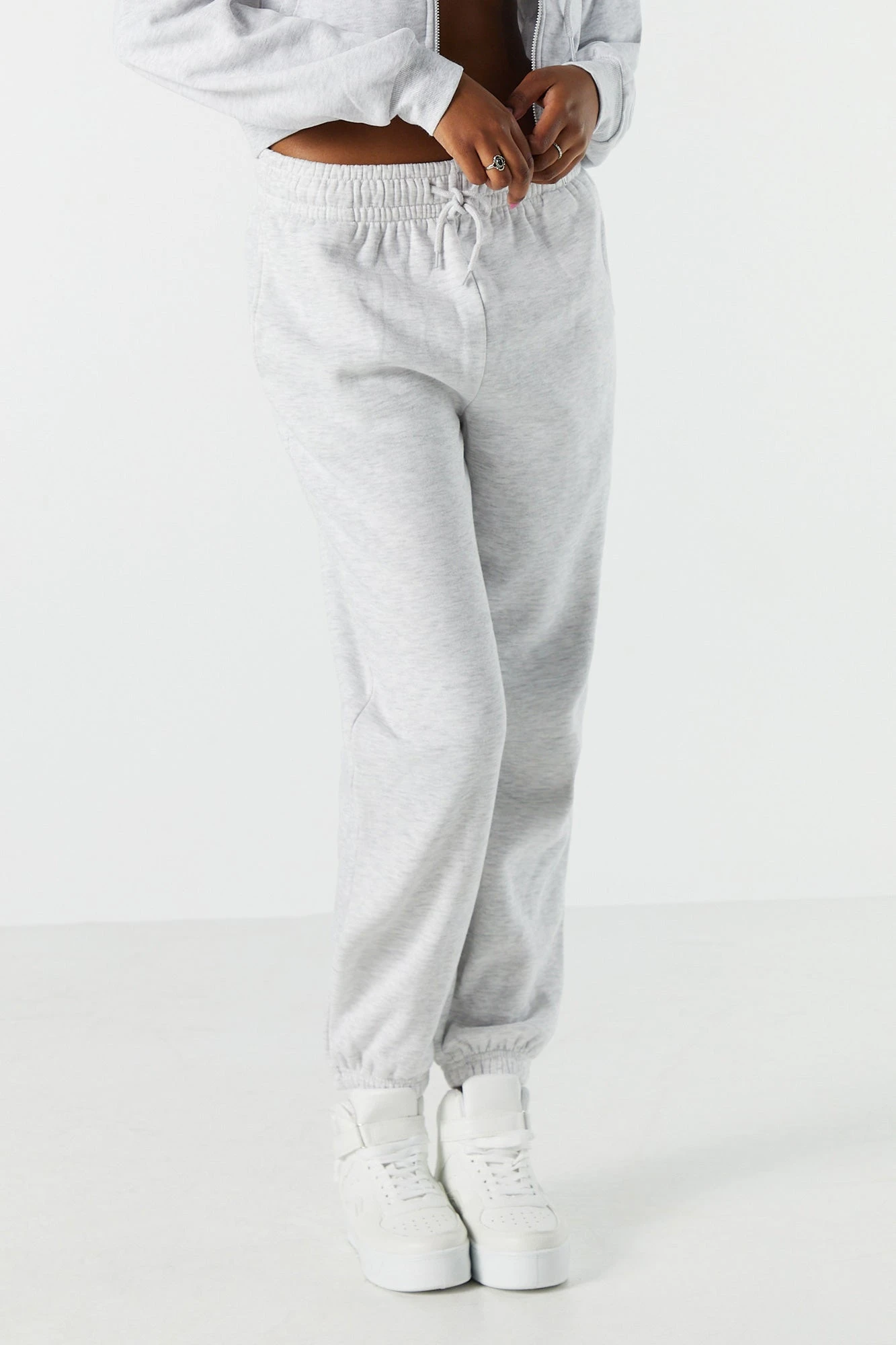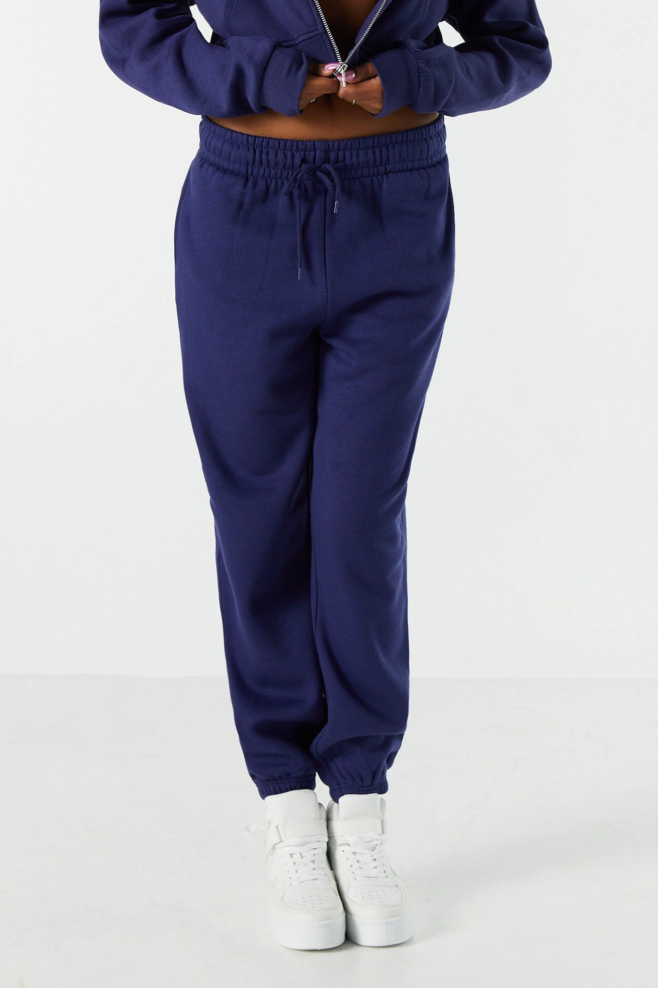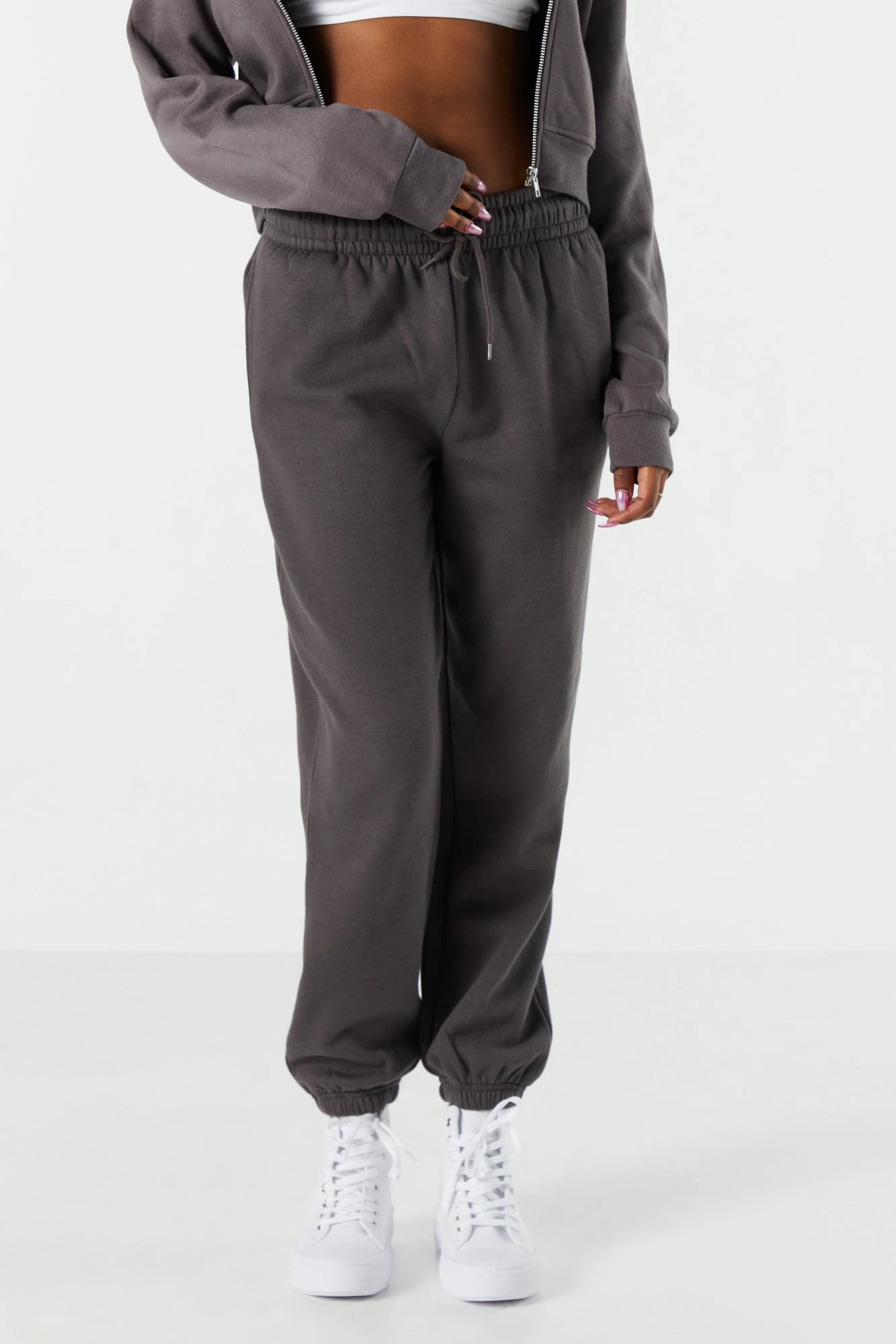 Update your off-duty wardrobe with this fleece jogger that is an everyday comfy and cute essential. This jogger features high-rise waist, fleece material, drawstring waist, slide-in pockets, and cinched ankles.