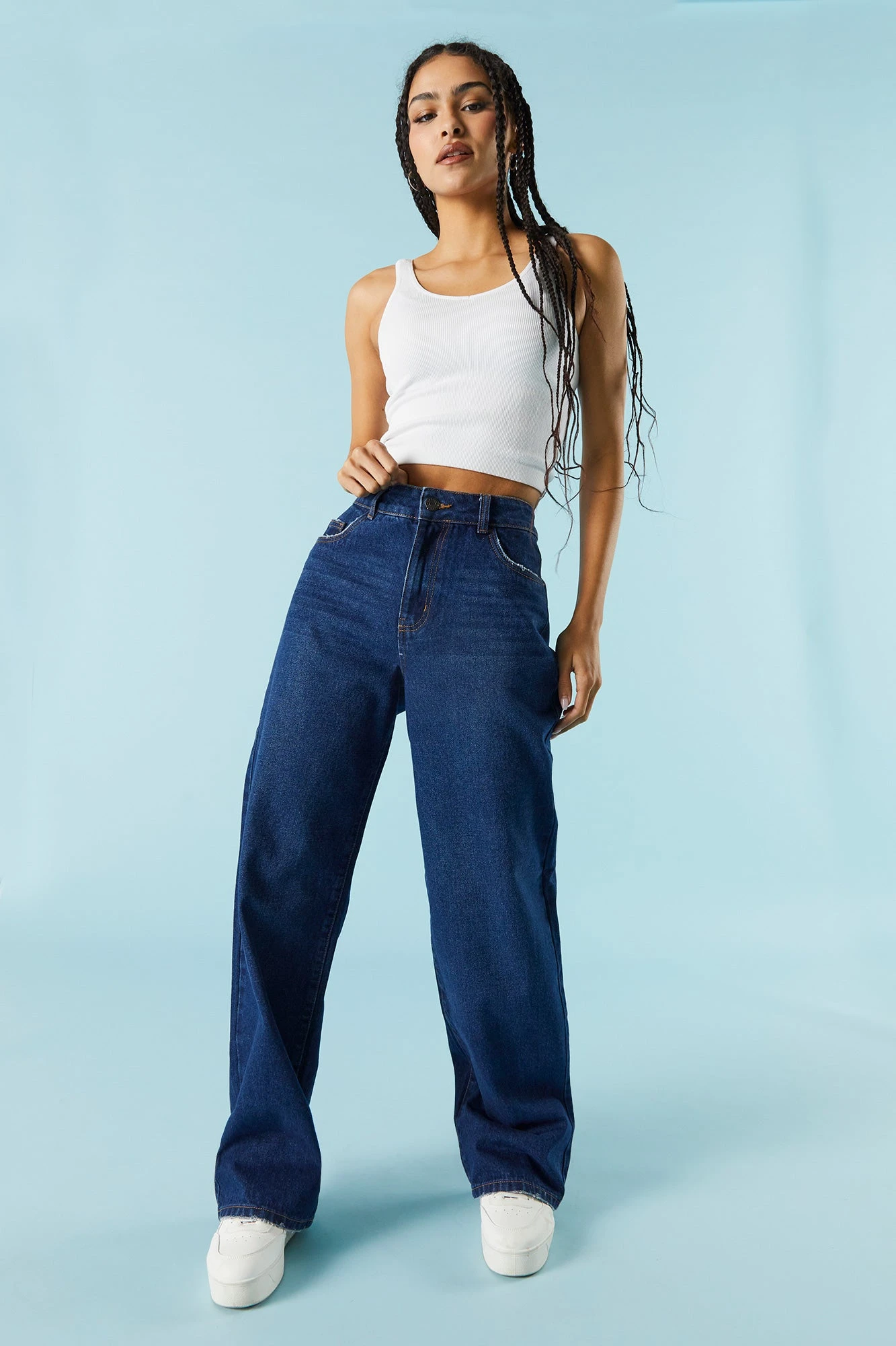 Refresh your denim collection with this baggy beauty! This jean features high-rise fit, baggy fit, zip-fly button-up closure and five pockets.