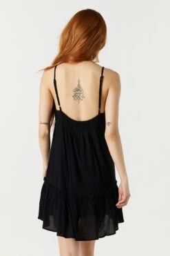 Tan Print V-Neck Tiered Babydoll Mini Dress
