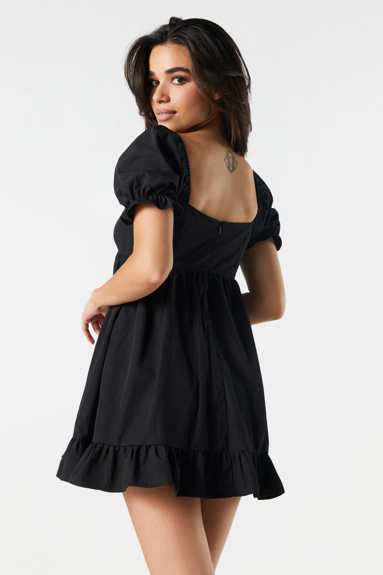 Easy and breezy, this babydoll dress was made for the new season! This dress features sweetheart neckline, babydoll silhouette, puff sleeves, ruffle hem, and mini length.