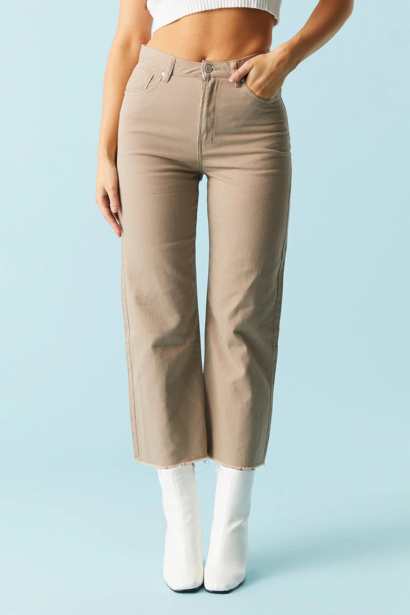 Strike a pose and steal some hearts in these fierce wide leg bottoms. This jean features wide leg, five pockets, zip-fly button-up closure, medium wash and raw ankle hem.