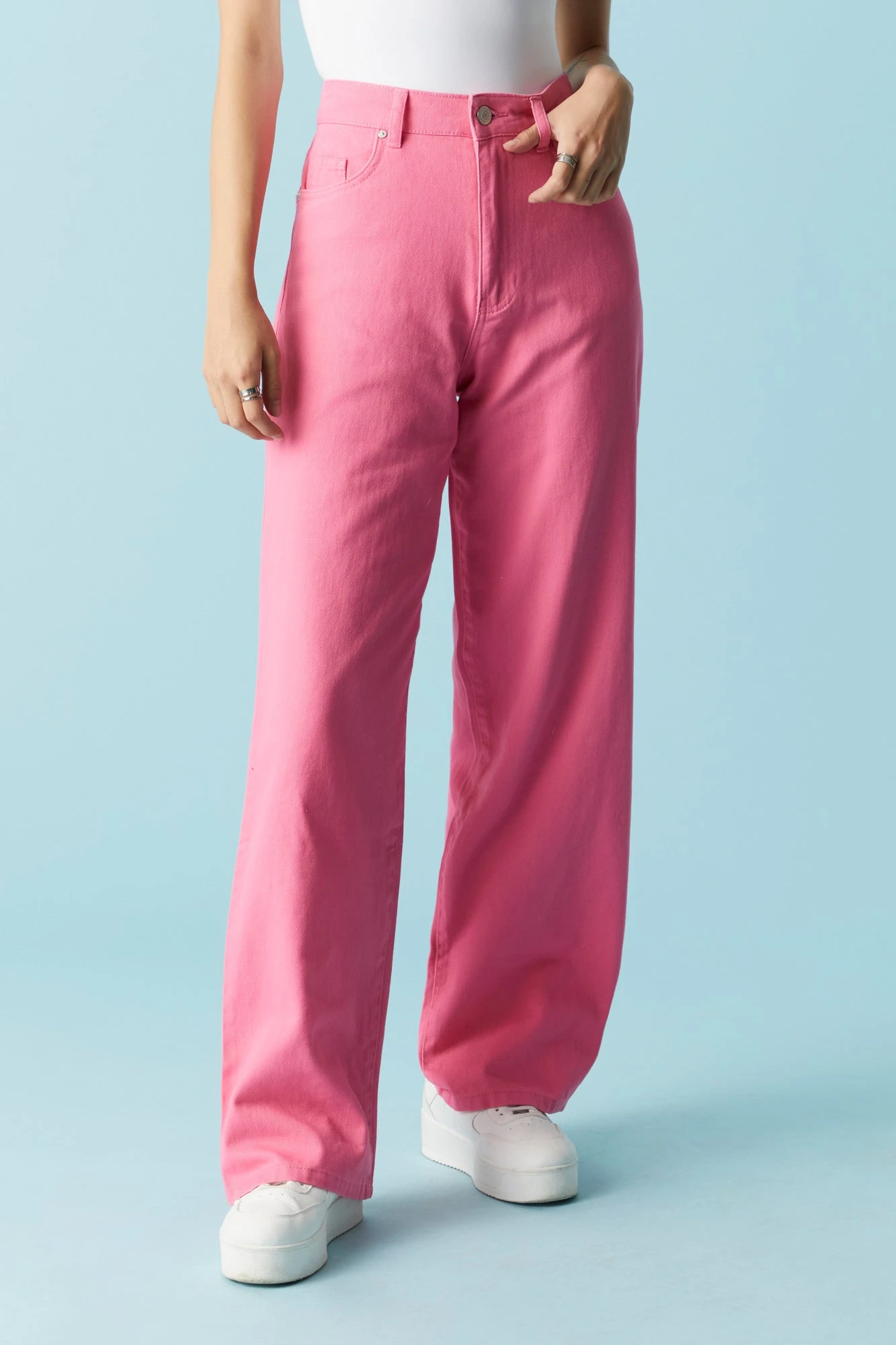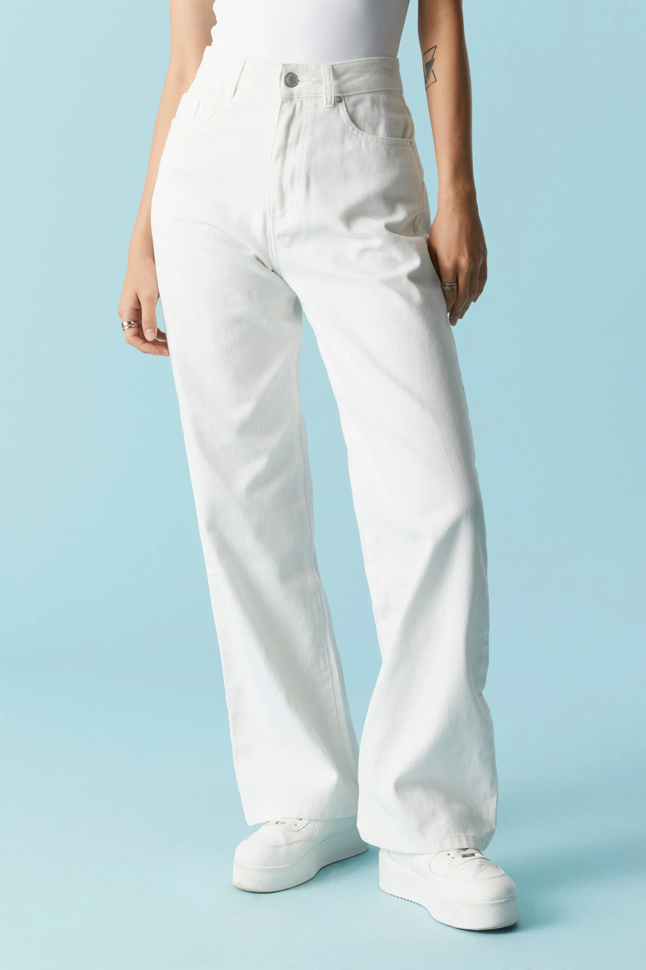 This solid base creates the perfect foundation for your perfect outfit! This jean features zip-fly button-up closure, five pockets, wide leg, rigid fit and wide leg.