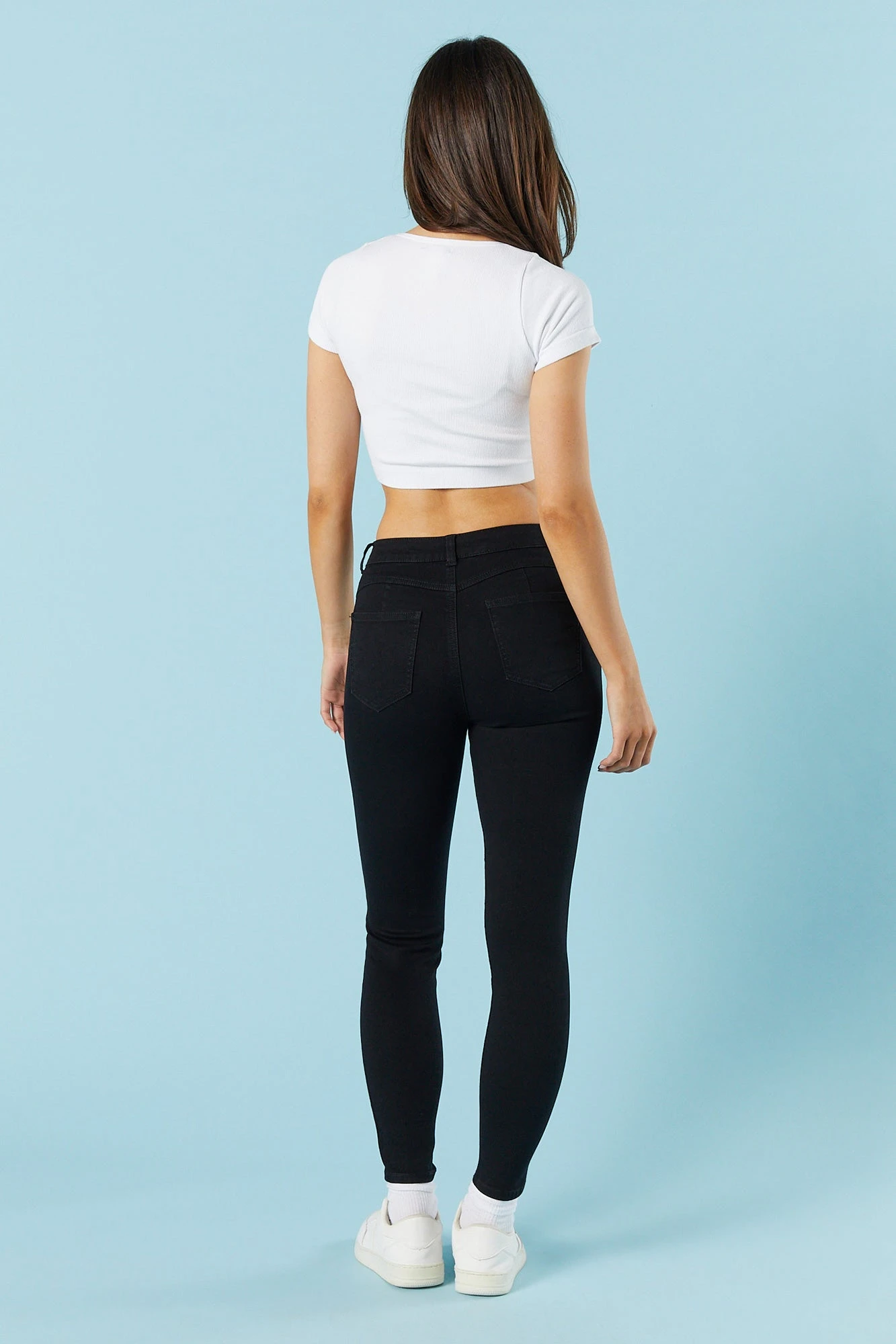 These figure-loving jeans are ready to become staples in your wardrobe! This jean features black wash denim material, 5 pockets, zip-fly button-up closure, belt loops, and skinny leg.