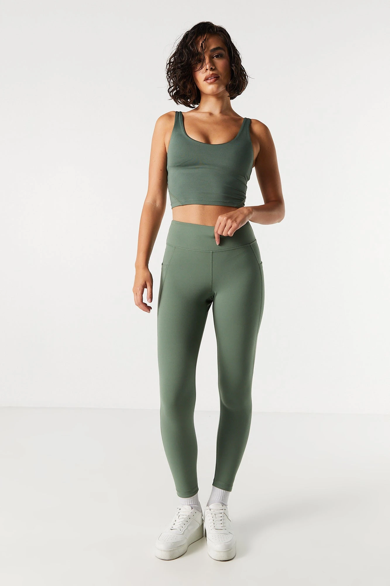 Sweat it out, sis! This padded tank provides support when you need it most. This tank features scoop neckline, inner padding, sleeveless cut, and cropped hem.