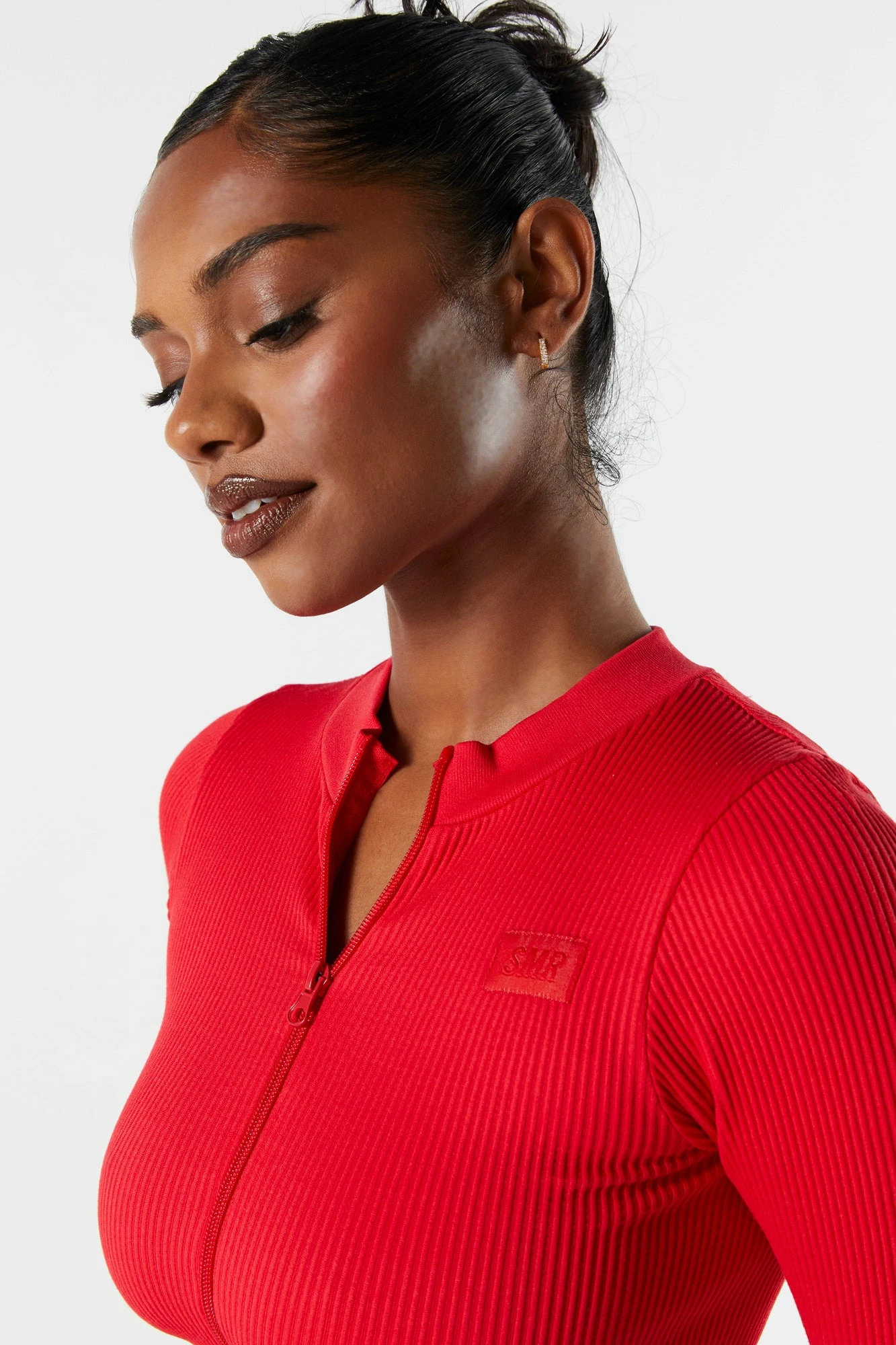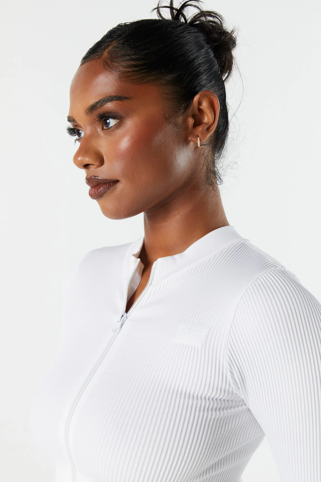 Sommer Ray is taking your active game to the next level with styles so sickening, they’ll make you want to sweat! This top features seamless construction, all-over ribbing, zip-up front, long sleeves, and rubber patch logo.